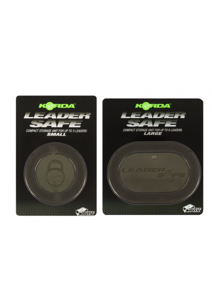 Il Korda Leader Safe è un sistema compatto e antigroviglio per contenere un massimo di tre leader completi nel modello S e 6 leader completi nel modello L. Può contenere clip portapiombo e sistemi Heli-Safe ed è progettato per adattarsi perfettamente alla Tackle Box quando è senza custodia. La custodia rimovibile protegge i tuoi leader quando vengono riposti al di fuori della Tackle Box.