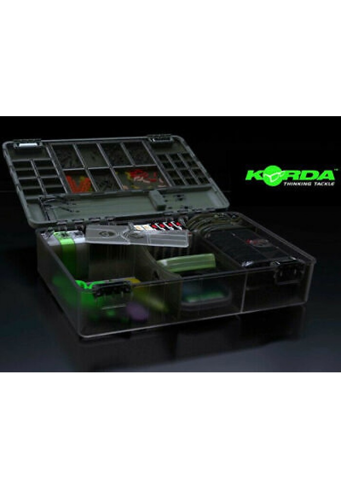 Nuovissima cassetta porta minuteria di Korda adatta per il trasporto di minuteria,ami,rig,filati, bobinette,forbici,clip,girelle, ecc. In plastica antiurto con chiusura a magnete. Perché l’abbiamo creata? Risposta facile: dare alle persone diverse opzioni. L’abbiamo pensata per un lungo periodo di tempo e volevamo creare un prodotto che ritenessimo MIGLIORE di quelli che si trovano già in circolazione.È il perfetto sistema di immagazzinamento della minuteria di ogni tipo, progettata per ospitare il Korda Leader-Safe, le Mini-boxes, le bobine Korda, le scatole di ami Kamakura, i rig già pronti, le clip, ecc