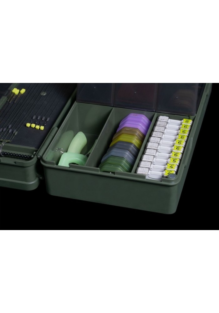 La stessa Armoury Tackle Box che tutti conosciamo e amiamo, ma ora con un nuovo coperchio che offre l'aggiunta di 38 piccoli vani portaoggetti, perfetti per girelle, anelli, perline e molto altro.