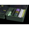 Ci sono un totale di 67 vani portaoggetti di varie dimensioni che ospiteranno una vasta gamma di oggetti come: forbici, ami, terminali, Multi Tools e aghi, fino a piccoli oggetti di attrezzatura, come perline per ami, girelle e anelli per rig. Tutto ha un prorpio spazio nell'Armory Pro.