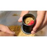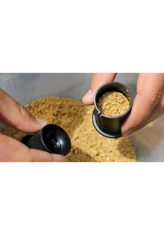 - Riempite una tazza capiente di esche fino al bordo. Inserire una tazza piccola e spingere fortemente