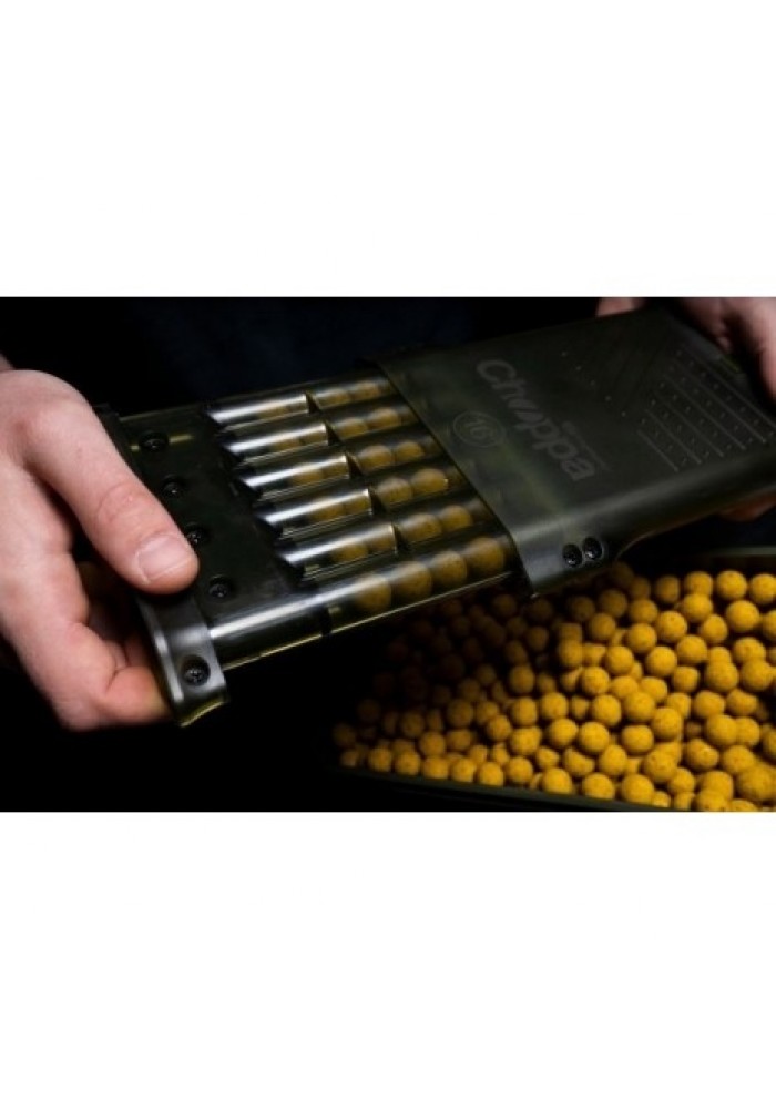 Progettato e sviluppato per tagliare più esche alla volta, risparmiando tempo e fatica rispetto ai metodi tradizionali. Design semplice, facile da usare e rende la pesca con le boilies tritate un piacere e crea una situazione di innesco molto diversa da quella delle tradizionali boilies rotonde.