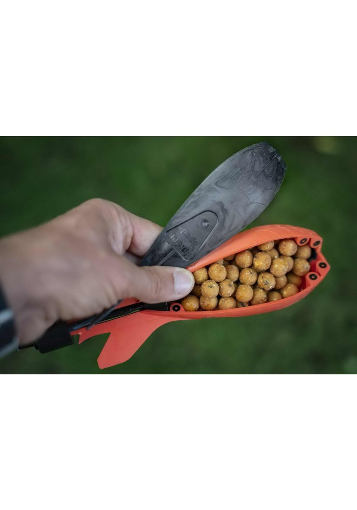 Aperto in 2 sezioni, carica granaglie e pasture con elevata velocità e semplicità, senza che le mani vengano a contatto con le esche.