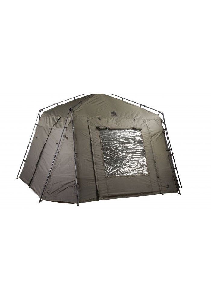 Il Gazebo dispone di porte in tutti e quattro i lati, tra cui una di queste si presenta doppia e provvista di zip con cinghie e rete per fissarla, le altre invece dispongono di aperture singole centrali e di attacchi elastici. Due delle quattro porte laterali dispongono di pannelli anti-intemperie in Velcro con rete interna per l’aria fresca. Un bel tocco sarebbe quello di fare affacciare le entrate delle vostre tende Double Top e Titan al gazebo, trasformando così il vostro ambiente in qualcosa di unico.