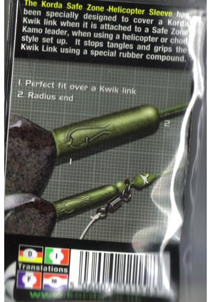 sono state specificamente progettate per coprire il Korda Kwik Link quando è collegato alla Safe Zone Kamo Leader. Quando si utilizza il sistema ad elicottero o quello Chod. Blocca i grovigli e stringe il Kwik Link grazie alla sua speciale componente di gomma.i