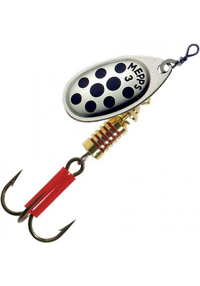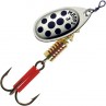Artificiale rotante con paletta argentata e punti neri conosciuto dai pescatori di tutto il mondo; ideale per tutti i tipi di pesca grazie alla vasta gamma di misure disponibile. Ottimo sulla distanza di lancio; lavora bene sia con recuperi lenti che veloci, ottimo l'effetto visivo e acustico durante il moto. Disponibile nelle misure: