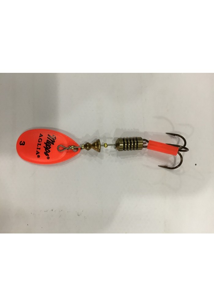 Artificiale rotante fluò con paletta arancione conosciuto dai pescatori di tutto il mondo; ideale per tutti i tipi di pesca grazie alla vasta gamma di misure disponibile. Ottimo sulla distanza di lancio; lavora bene sia con recuperi lenti che veloci, ottimo l'effetto visivo e acustico durante il moto. Disponibile nelle misure: