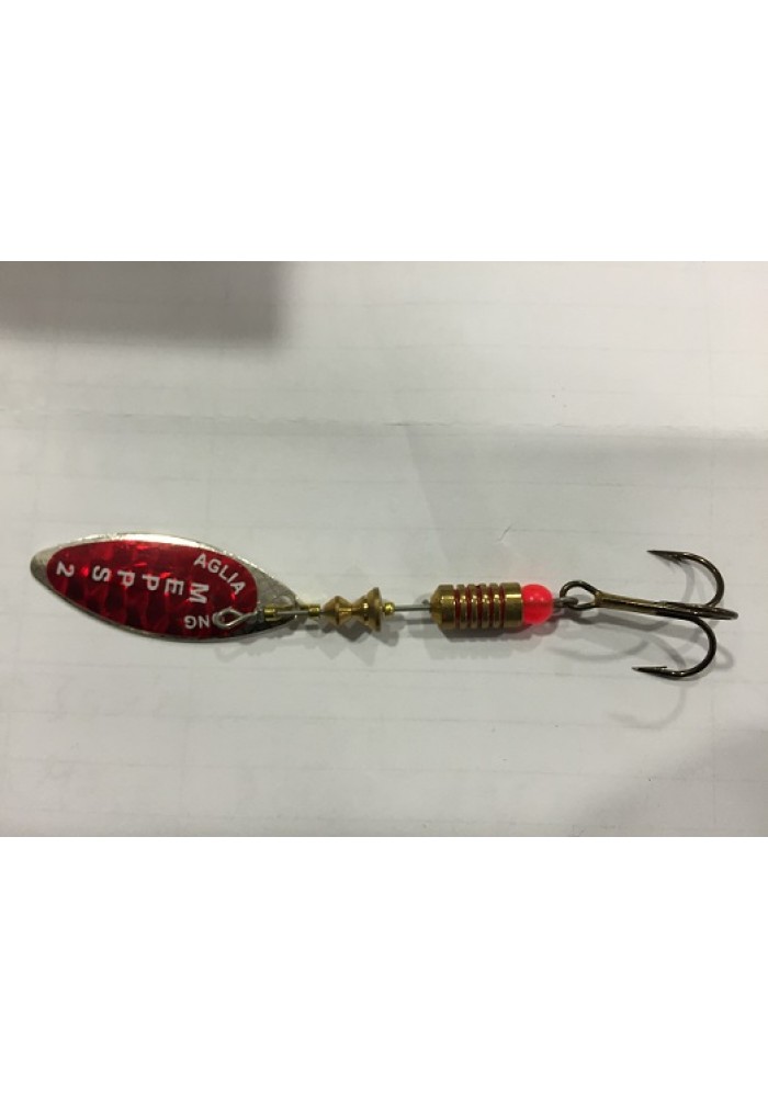 Artificiale rotante con paletta lunga rossa, con la sua caratteristica forma a foglia di salice, pesca piu' in profondità ed è piu' regolare producendo un azione meno sfarfallante,piu vicino all'asse.L'aglia Long rappresenta il terzo modello vibratorio della gamma Mepps e grazie alla moderata resistenza che produce, esso permette una pesca piu' in profondità,evitando la forza la forza frontale della corrente e mantenendo la posizione anche in canali con zone di vegetazione e rocce. Disponibile nelle misure: