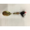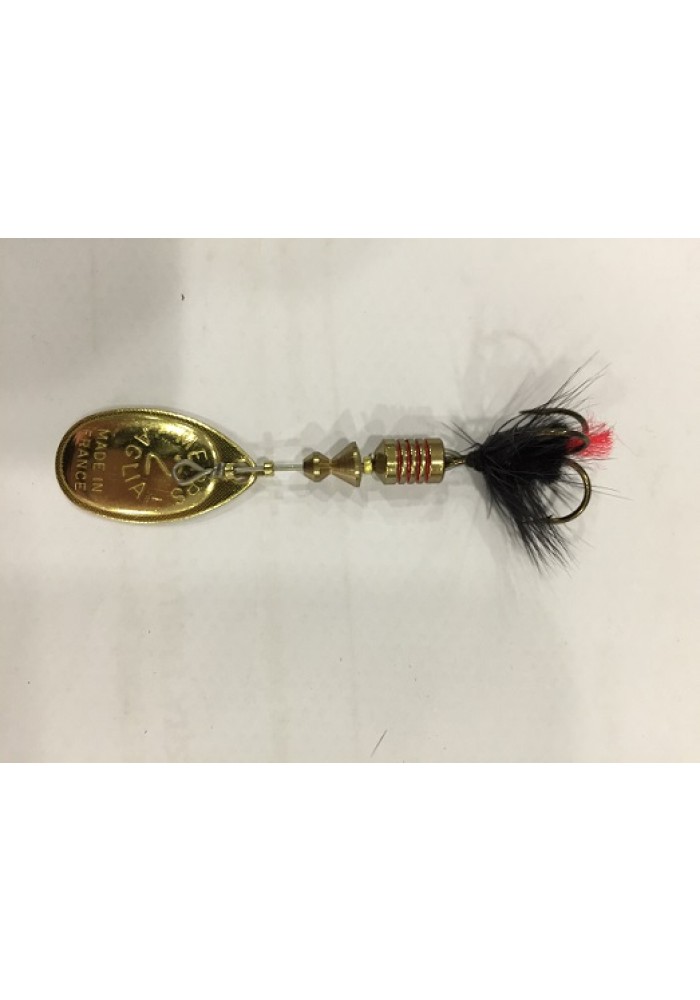 Artificiale rotante con paletta d'orata e piumetta nera e rossa sull'ancoretta, conosciuto dai pescatori di tutto il mondo; ideale per tutti i tipi di pesca grazie alla vasta gamma di misure disponibile. Ottimo sulla distanza di lancio; lavora bene sia con recuperi lenti che veloci, ottimo l'effetto visivo e acustico durante il moto. Disponibile nelle misure: