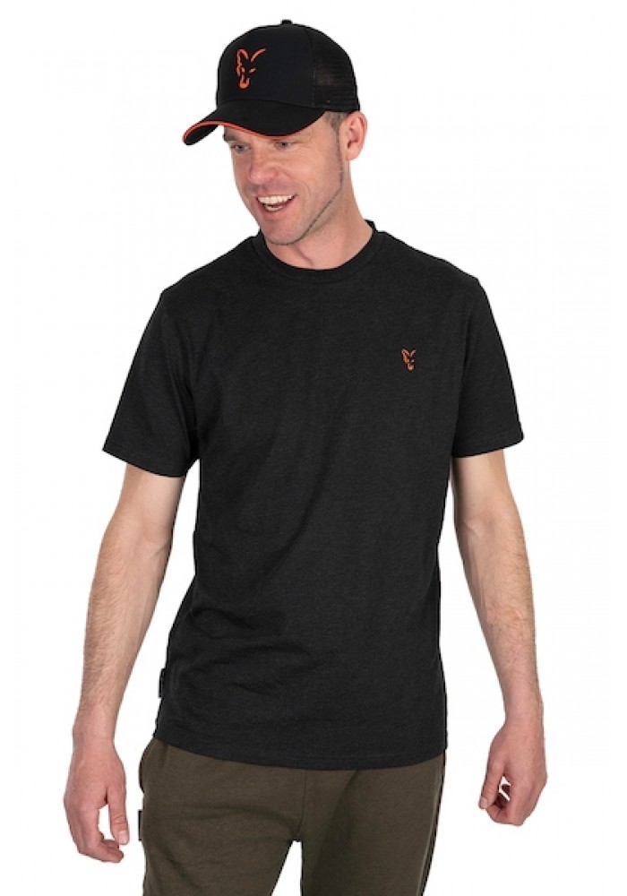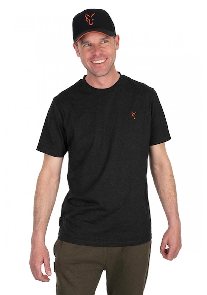 FOX COLLECTION T BLACK / ORANGE T-SHIRT NEW