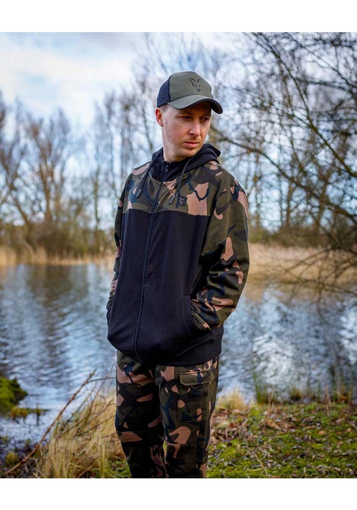 FOX LW BLACK/CAMO SPLIT ZIP HOODY
