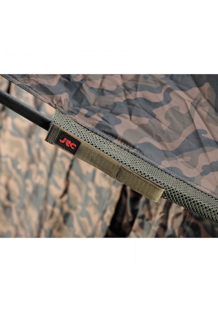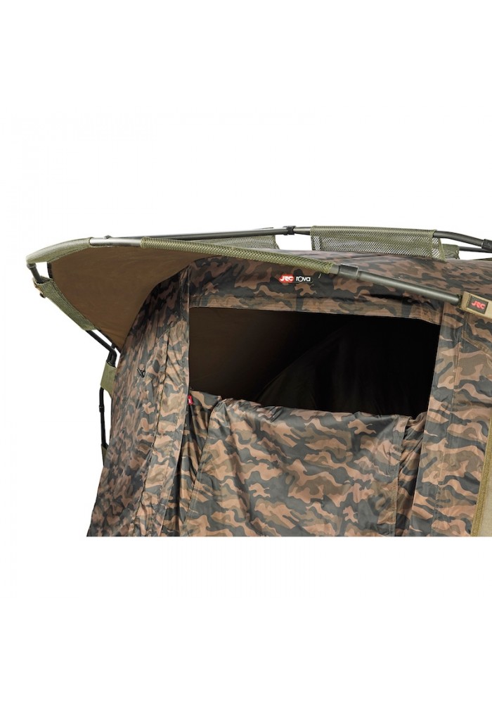 Il JRC® Rova Peak Bivvy 2 Man Camo presenta un design bivvy efficiente in termini di spazio, tra cui una veranda e prese d'aria in rete mozzi nella parte anteriore e posteriore. Il bivvy Rova Peak ha un prezzo interessante senza rinunciare alla qualità.