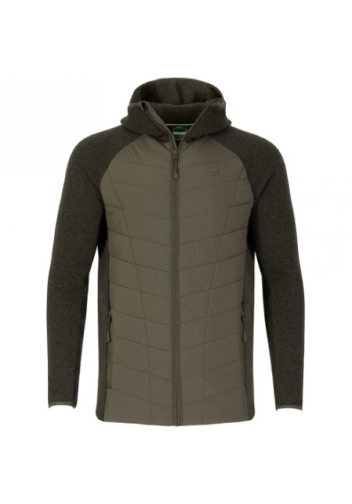 La giacca ibrida è una fusione di due delle giacche più popolari di Korda; il Polar Fleece e il piumino. Prendendo le proprietà del pile leggero di uno e la tecnologia della fibra cava dell'altro, si è creata una miscela di calore centrale per il corpo, ottenendo al tempo stesso la manovrabilità di un pile leggero. L'Hybrid Jacket è il tuttofare completo e permette di lanciare e spodding in condizioni di freddo, senza inibire i movimenti.