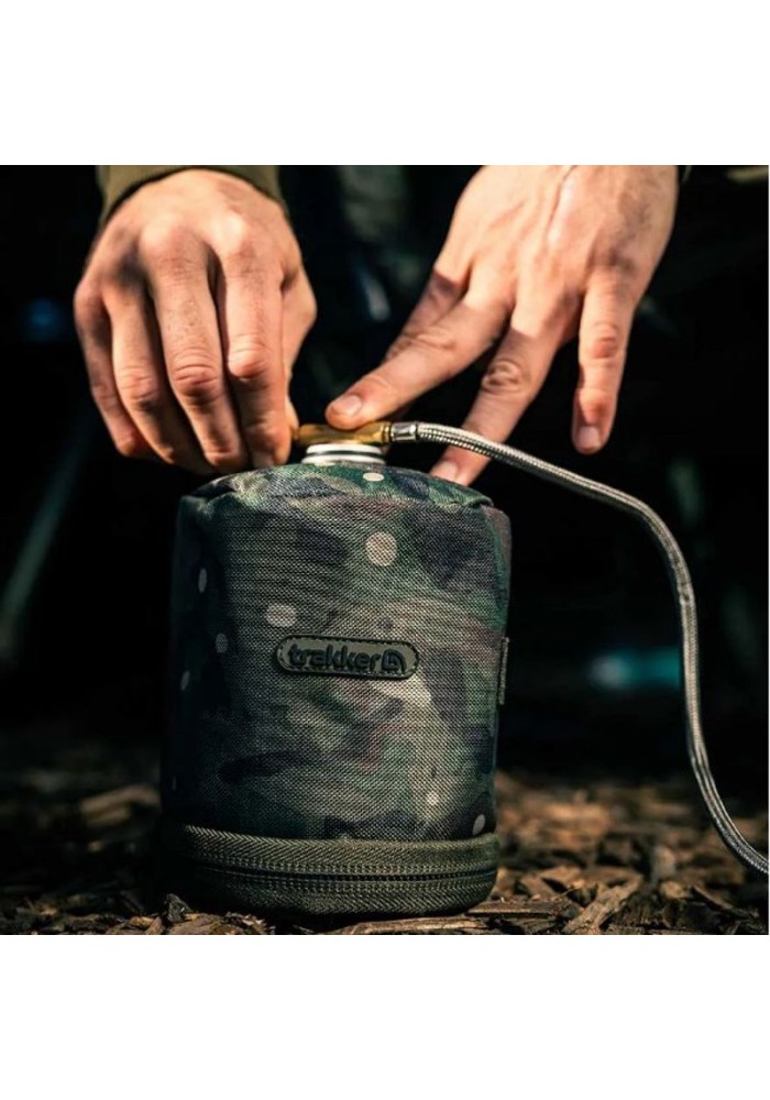 La NXC Gas Canister Cover è progettata per contenere e fornire protezione termica alle bombole di gas standard da 450 g con tappo a vite, migliorandone le prestazioni durante tutto l’anno. La cerniera inferiore resistente consente un facile accesso quando si sostituiscono le bombole. La fodera interna è la stessa lamina ad alta densità utilizzata nella nostra gamma di bagagli da carpa Chilla Bag. Ciò aiuta a isolare la bombola quando fa freddo e a mantenere un migliore flusso di gas verso il fornello. Due anelli elastici sono posizionati sul lato per tenere a portata di mano un cucchiaino più leggero e fondamentale quando necessario.