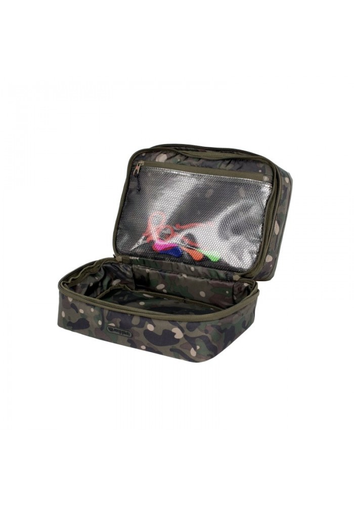 Poiché il vassoio per rig in EVA è magnetico, funziona perfettamente per fissare le punte del rig e gli strumenti per l'esca durante l'uso. Le tasche interne in rete nella borsa principale utilizzano una rete resistente che la rende ideale per riporre strumenti di rig come gli aghi da innesco senza preoccuparsi che rimangano intrappolati nella rete convenzionale.
