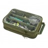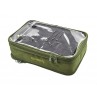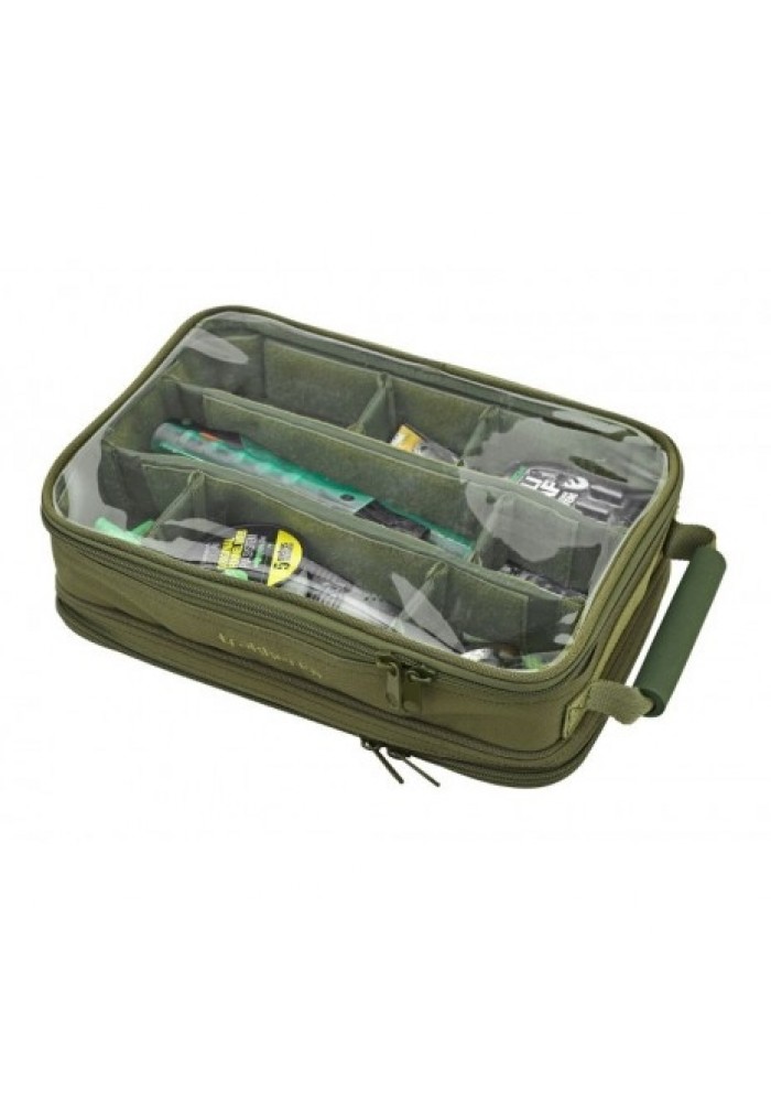 Grazie ai suoi divisori interni con velcro, l'NXG Tackle and Rig Pouch può essere personalizzato a piacere per organizzare al meglio gli accessori e la minuteria, mentre i terminali già preparati possono essere custoditi sulla tavoletta porta rig in EVA da 30cm x 20cm. I pannelli trasparenti su entrambi i lati permettono all'utilizzatore di vedere già da fuori il contenuto, e la tasca trasparente interna con zip posta al di sotto della tavoletta porta terminali, è utile per contenere ulteriori materiali.