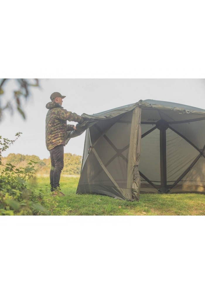 SP CUBE SHELTER permette configurazioni multiple della porta frontale: innanzitutto il sistema Mag-Loc a chiusura automatica che per prima SOLAR ha portato sul mercato e la porta possono essere convertiti in una veranda (i pali sono in dotazione), rendendo in questo modo il Cube Shelter funzionale ed adattabile.