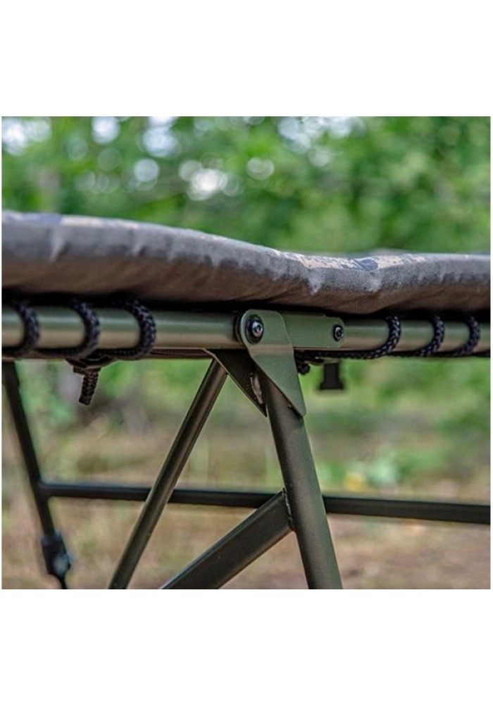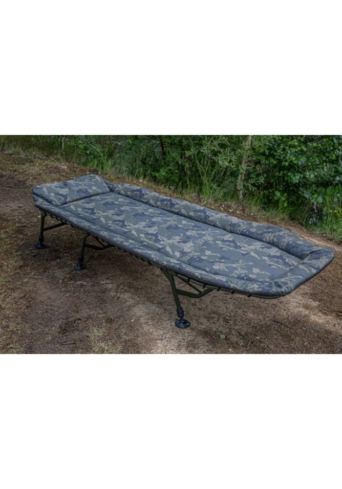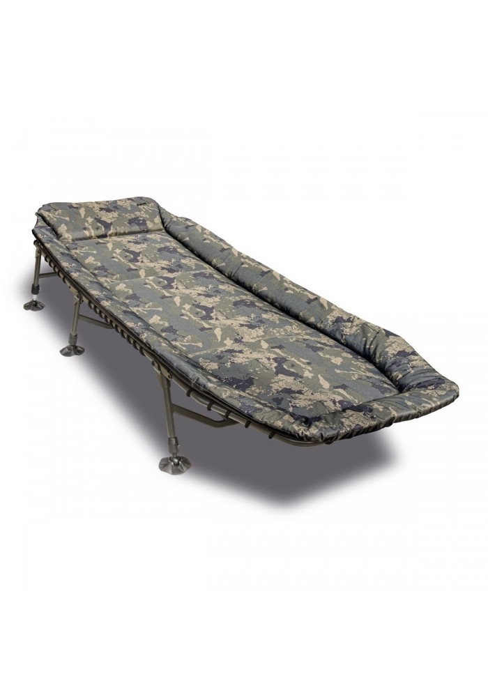 Caratterizzato da un materasso imbottito con 600D, rivestimento in PVC, tessuto mimetico e cerniere a doppio perno per consentire a questo letto di essere piegato in modo piatto, anche con un sacco a pelo in posizione. Sei gambe regolabili con piedi anti-fango solari e una cinghia di fissaggio per mantenere il letto chiuso e le gambe piegate durante il trasporto.