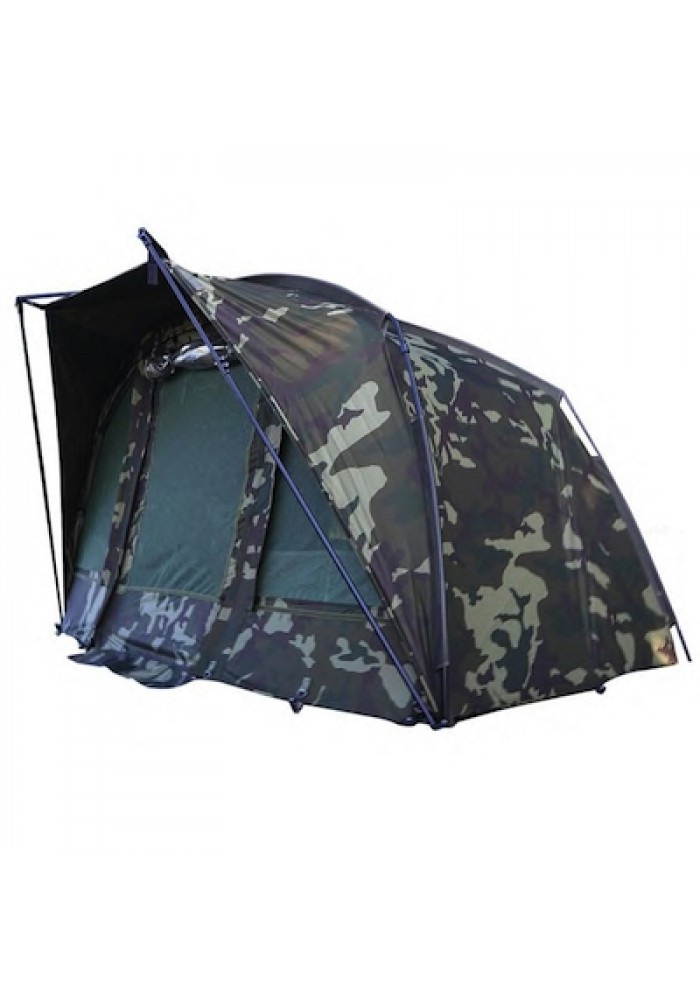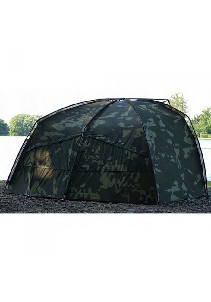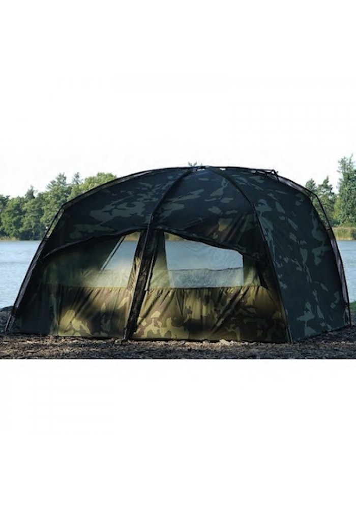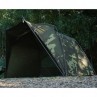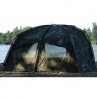 Il bivvy dispone anche di un pannello frontale con chiusura lampo completo di finestrini laterali in zanzariera e sistema di porte anteriori completamente personalizzabile.