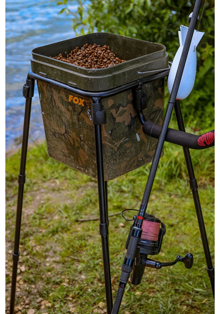 Design compatto “all in one” che mantiene il vostro secchio per pastura alla giusta altezza, e vi evita di chinarvi per riempire il vostro Spomb™ o Impact Spod™ Fox