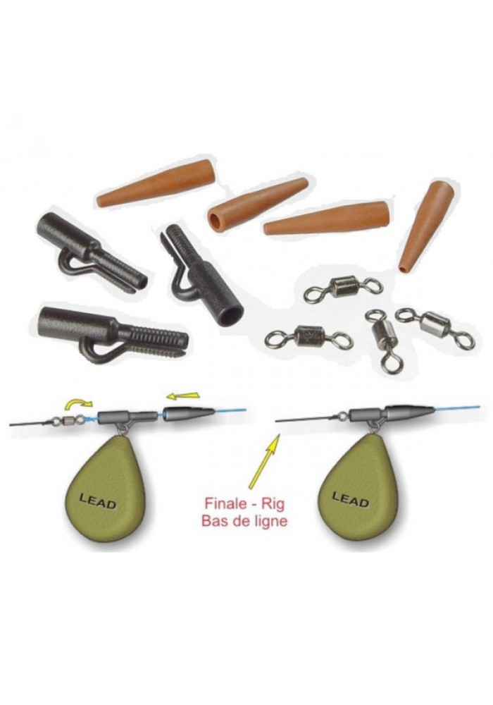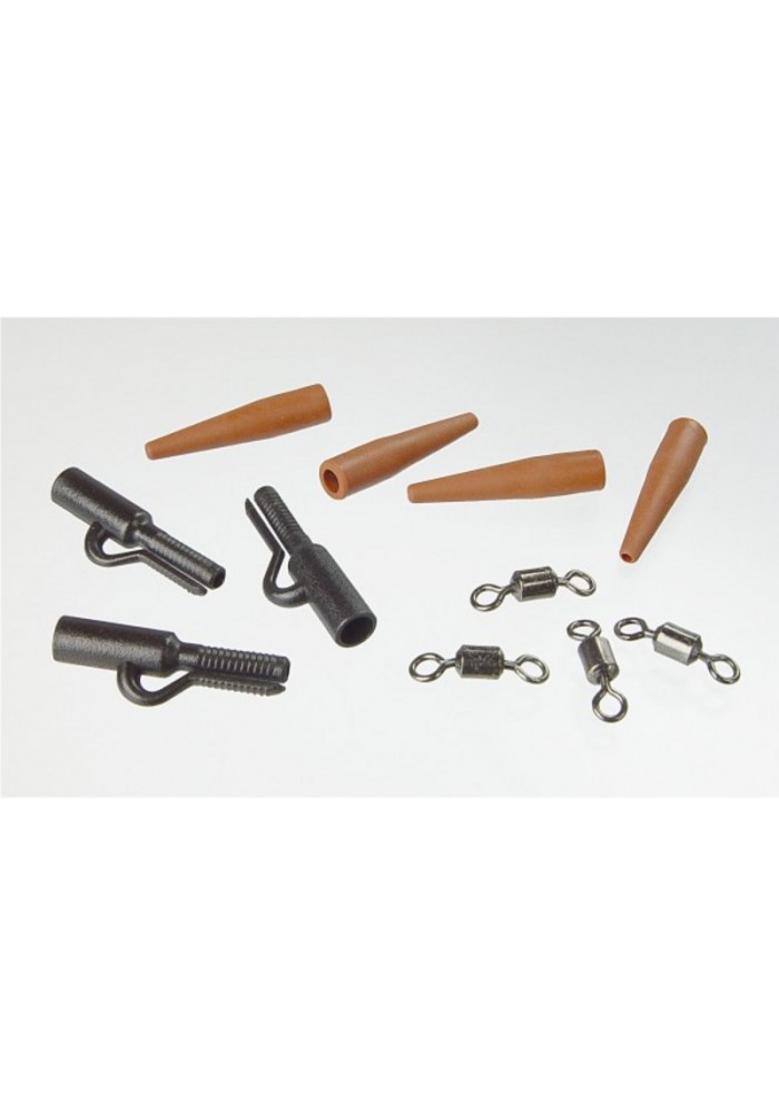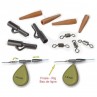Set di clip porta piombo, conetti e girelle. Con questo set si possono creare 10 montature porta piombo complete.