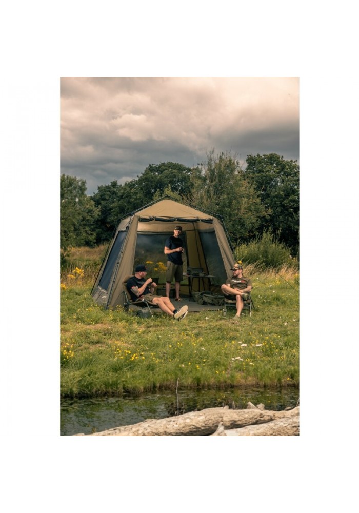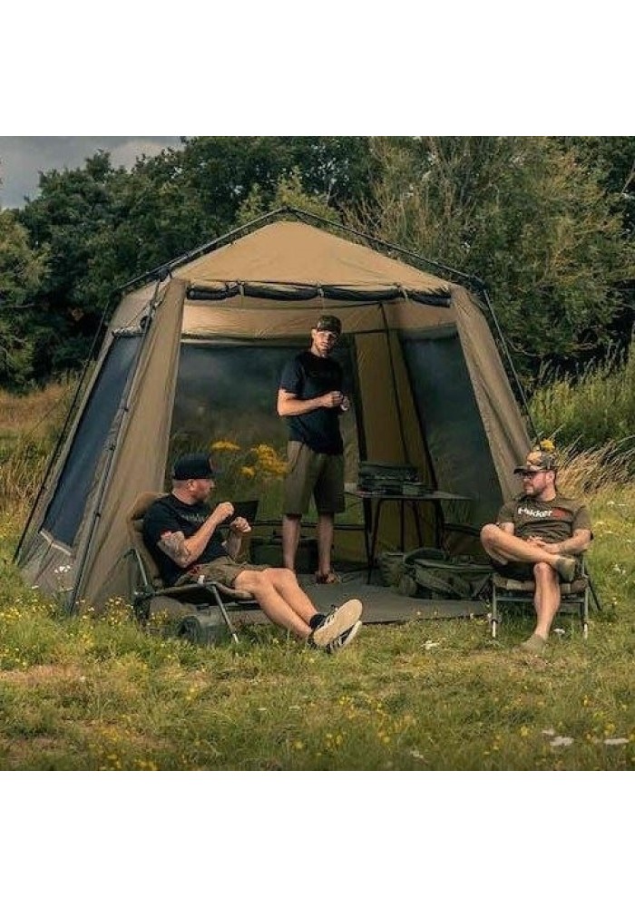 Questo gazebo da pesca multifunzionale può essere utilizzato come centro sociale, tenda da cucina o anche come bivvy.