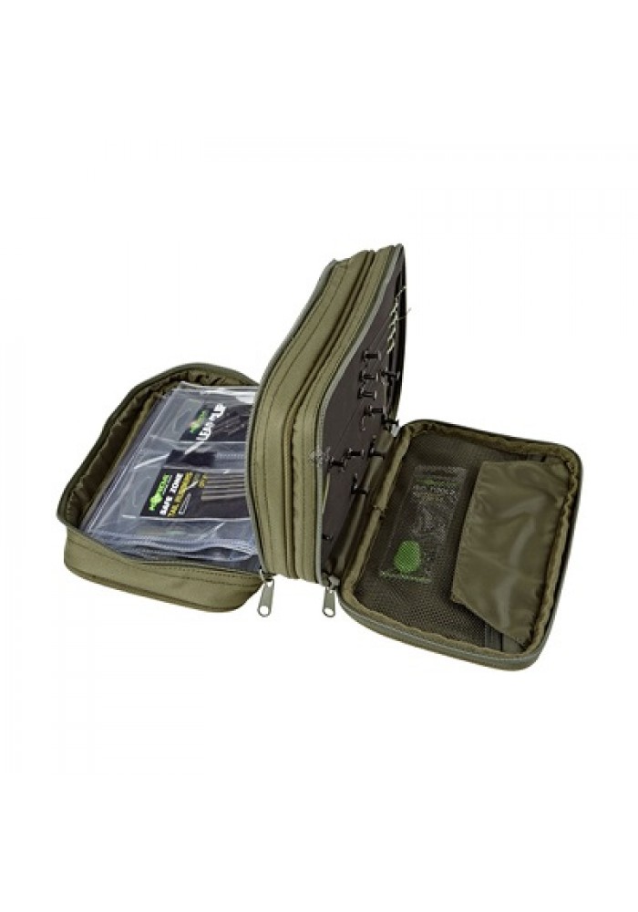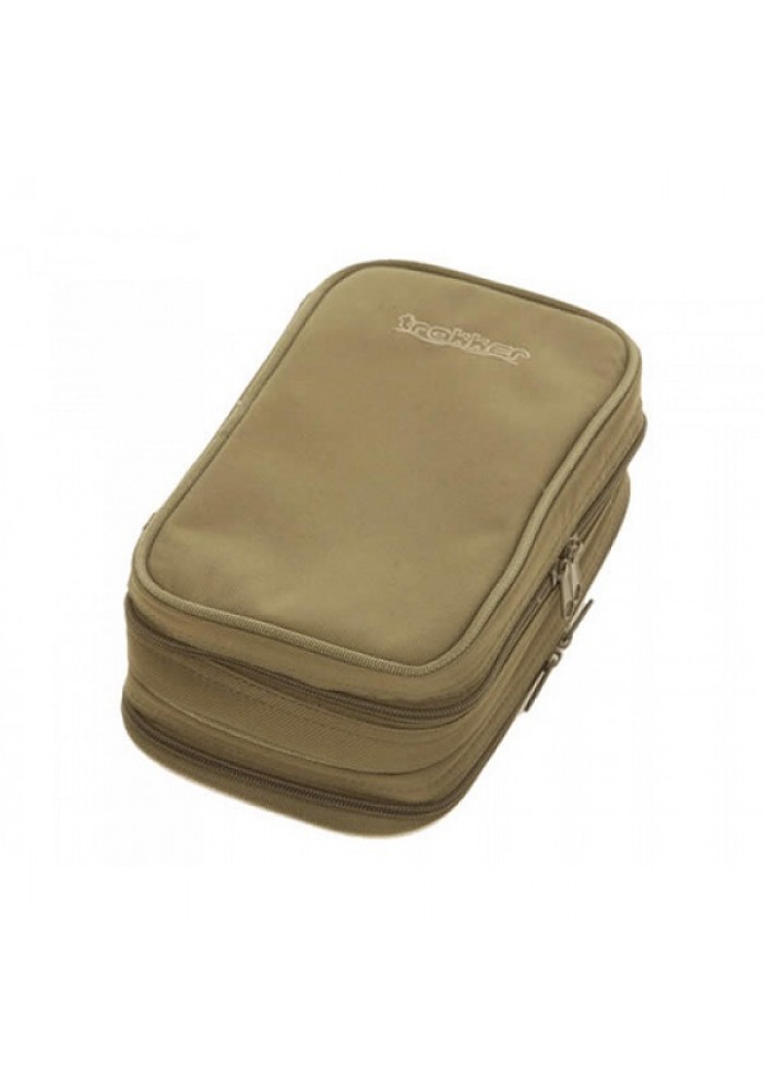 Porta terminali con corpo imbottito, due compartimenti separati dotati di cerniera e fornito con chiodini, Interno in schiuma ad alta densità e qualità su uno dei due lati, sei buste trasparenti in pvc con chiusura a velcro, raccoglitore removibile e tasche interne con velcro. Dimensioni: 26 x 15 x 10 cm.