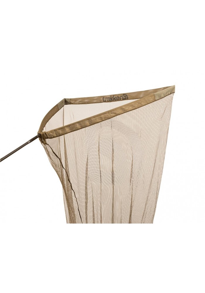 La rete profonda è stata realizzata con una rete rinforzata color oliva e rifinita con una grande icona Trakker. La rete copre due bracci in carbonio irrigiditi fissati insieme tramite un cavo altamente resistente; questi sono fissati in posizione con due speciali punte a vite lavorate a CNC che riducono l'usura prematura del cordone e della rete. Il guadino T12 viene fornito completo di borsa per il trasporto con cordino resistente all'acqua.
