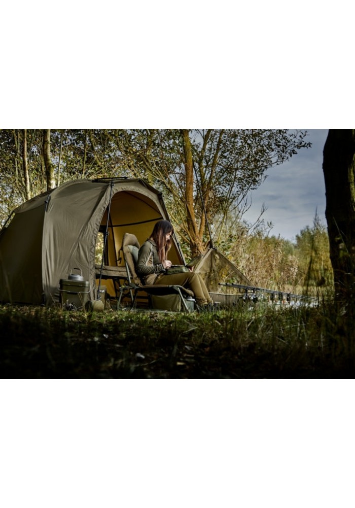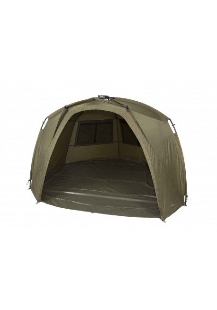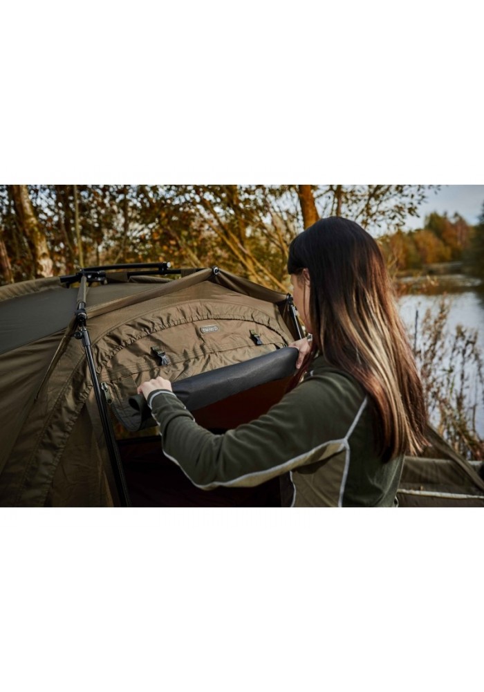 Ombrellone da carpfishing con pavimento, chiusura frontale e sovratelo come optional