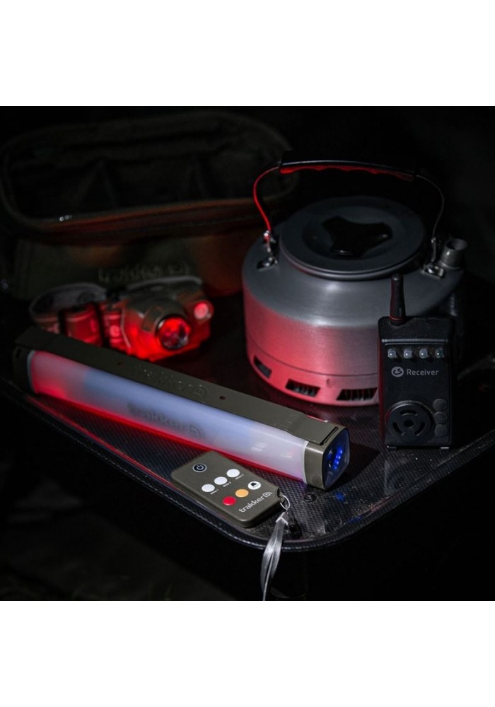 La Nitelife Bivvy Light Remote 200 può essere posizionata facilmente sul tetto del bivvy per illuminare lo shelter di note, grazie ai due potenti magneti sul retro della lampada., e tenute in posizione con la placca metallica fornita in dotazione e marcata con logo Trakker in rilievo.